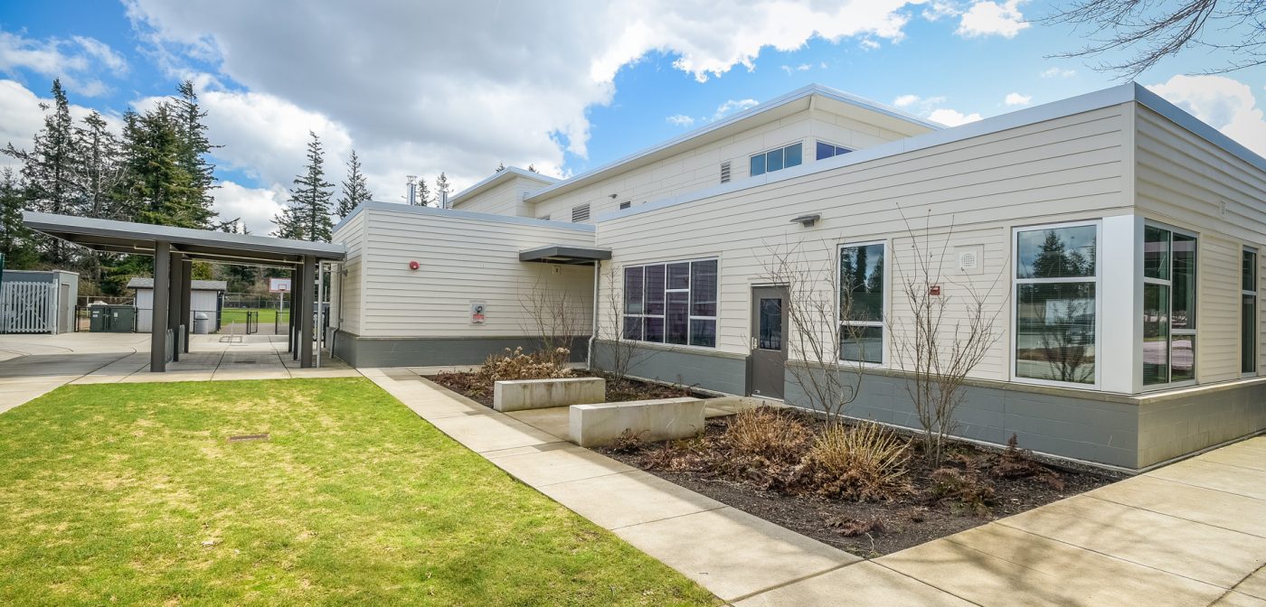 The building design of Birchwood Elementary catered to the preservation of its architecture and history, and valued the appearance of a newer, more modern version of the original school. The main entry way of the original school now makes a grand entrance to the school library. An arborist was brought onsite to protect and monitor the surrounding vegetation.